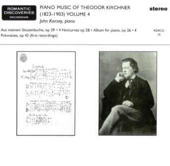 In 1862, Kirchner became director of the subscription concerts in Zurich, but remained there for only three years before returning to freelance life. He was appointed court pianist at Meiningen in 1872 and became director of the conservatoire in Würzburg the following year. Again, he did not stay long, and in 1876 moved to Leipzig for seven years, before going on to Dresden, where he taught score-reading. The year 1890 was a climactic one for him, for he abandoned his wife and family and went to live in Hamburg, where he was looked after by a former pupil. Four years later he suffered the first of two strokes that left him paralysed, and began to go blind.