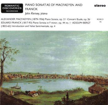 Piano Sonatas of Alexander MacFadyen (1879-1936) and Eduard Franck (1817-93), with other works of MacFadyen and Adolph Bergt John Kersey, piano RDR CD72 >>More details |